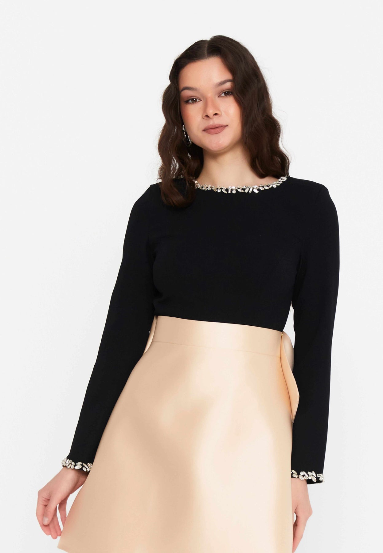 Fitted black top with jewel detailing